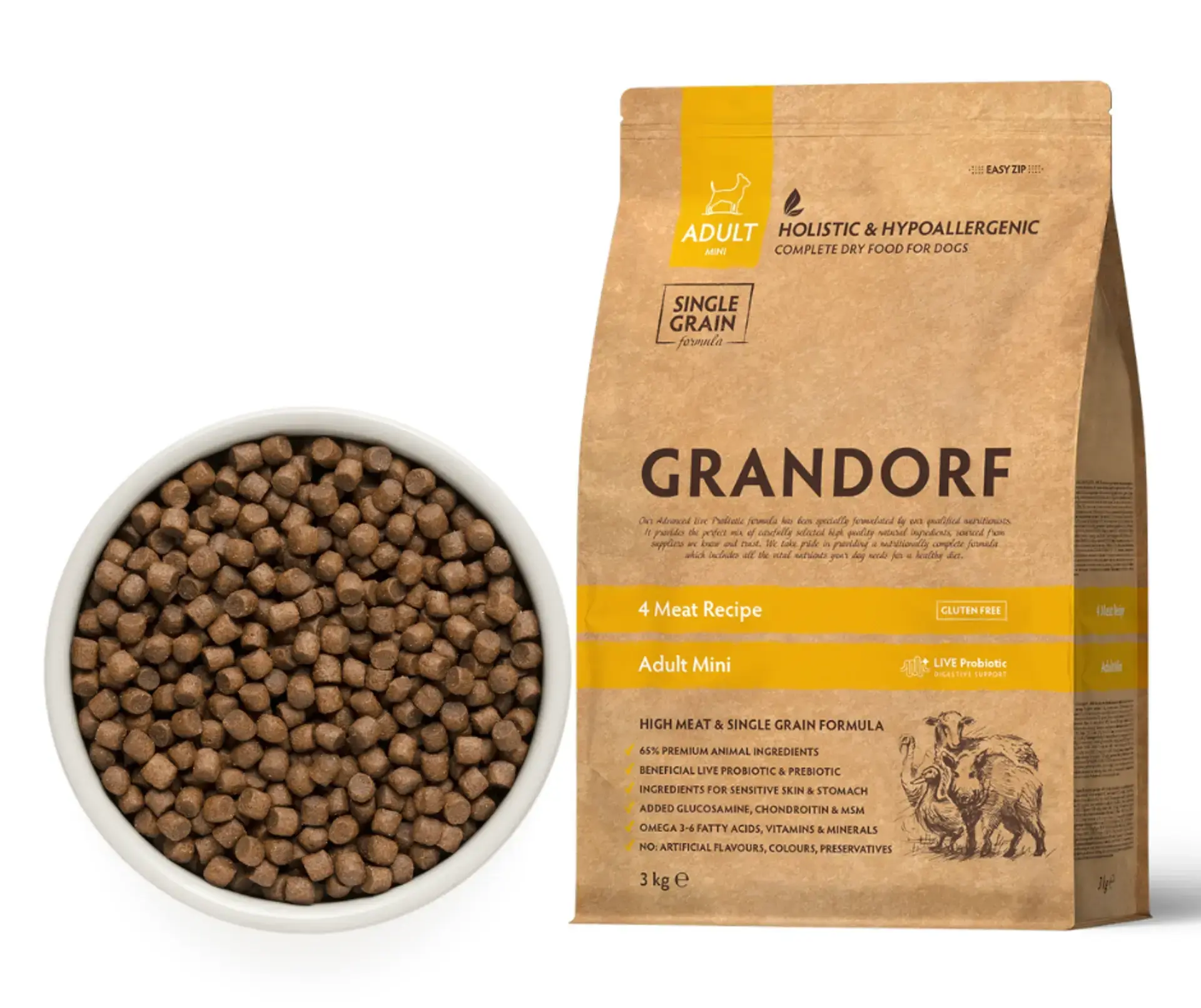 GRANDORF 4 Meat Adult Mini Breeds- pełnowartościowa karma dla dorosłych psów małych ras