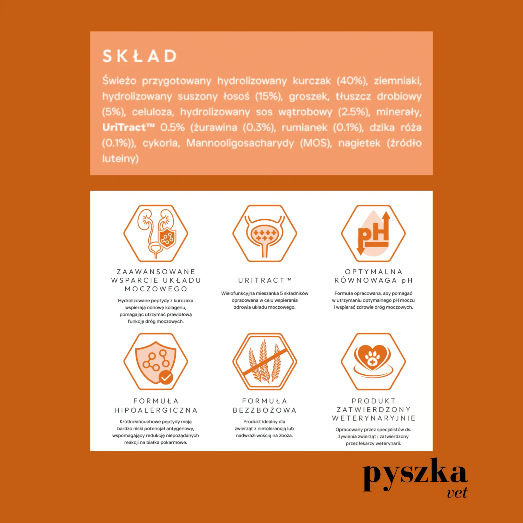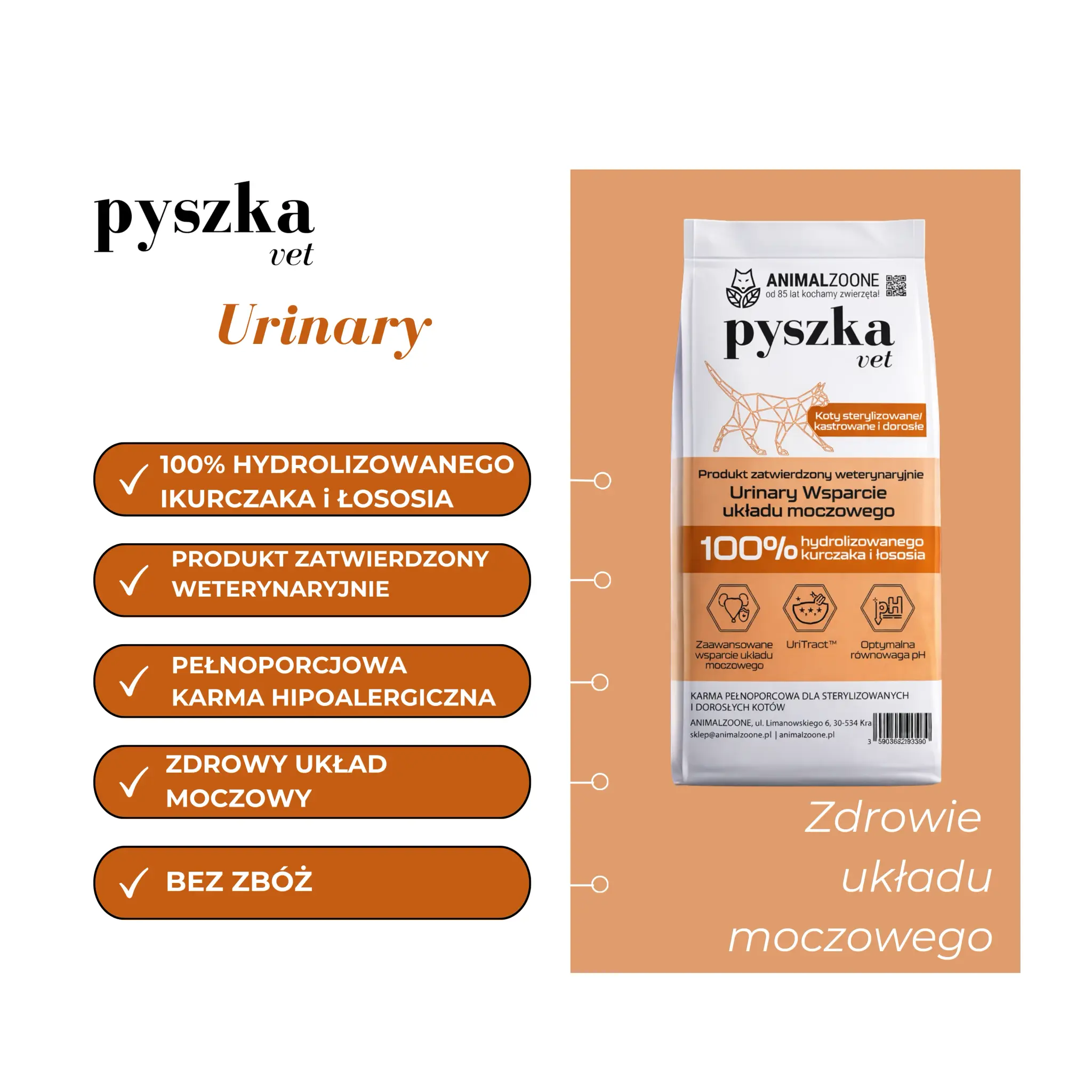 Pyszka Vet Urinary Wsparcie Układu Moczowego | Hydrolizowana Dieta Weterynaryjna dla Kotów Sterylizowanych