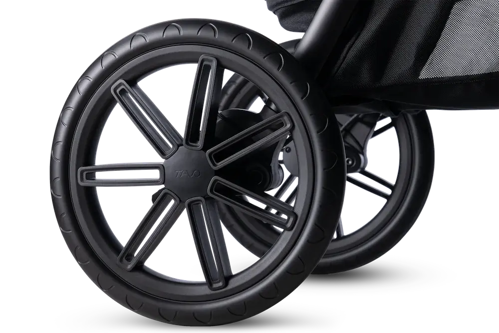 To w zasadzie ulepszenie obu kół: przednie koła mają średnicę 21 cm (model Roscoe 18 cm), a tylne 32 cm (model Roscoe 23 cm).