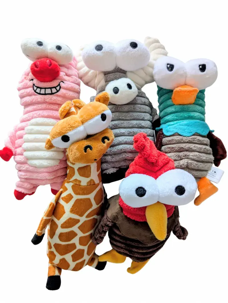 Aksamitny styl: Miękki, prążkowany materiał i żywe kolory sprawiają, że zabawka prezentuje się świetnie i jest niezwykle przyjemna w dotyku. To prawdziwa gwiazda każdej psiej wyprawki!